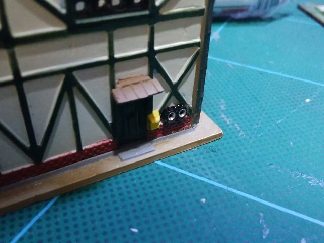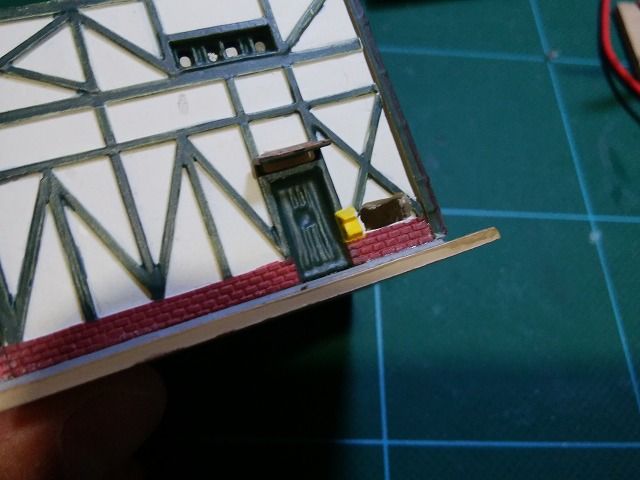 この建物は組立済みで瞬間接着剤で固定されていますので、最小限の加工で点灯化します。