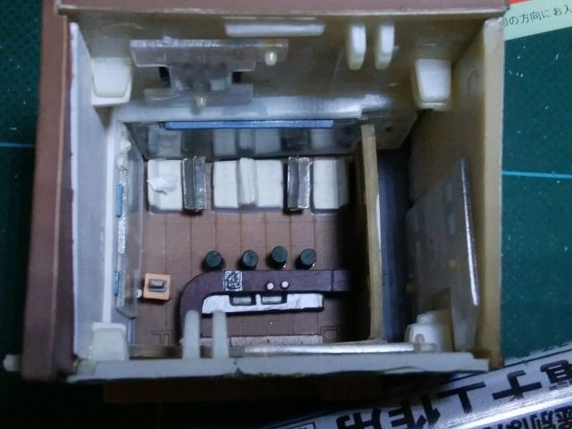 内部が良く表現されていて好素材ですが、ガラスの透過度がイマイチなのがちょっと残念です。今回は目立たない場所ですし人を置かないのでボンヤリ光らせる程度で・・・