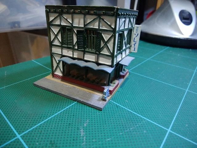 市街の奥の方の隙間にピッタリ合ったので、喫茶店を置きます。中央の方にもTOMIX住宅改造の喫茶店があるので2件目になりますね。