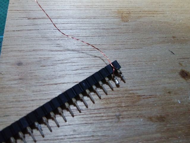 ピンソケットとポリウレタン線をハンダします。